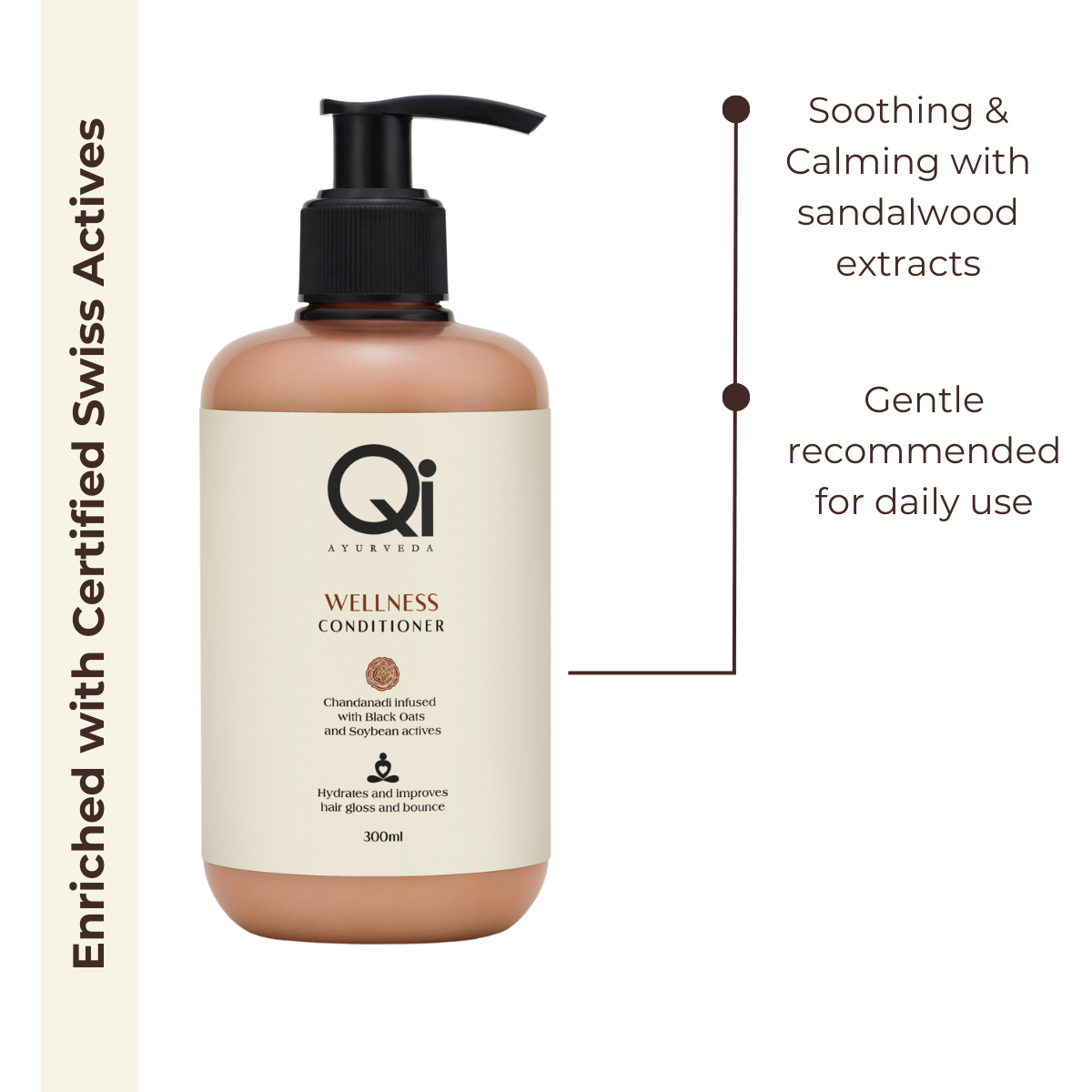 Swiss-certified Actives: Black Oats Extract and Lecithin (Soybean) seal hair cuticles, smoothening the surface and enhancing lustre.